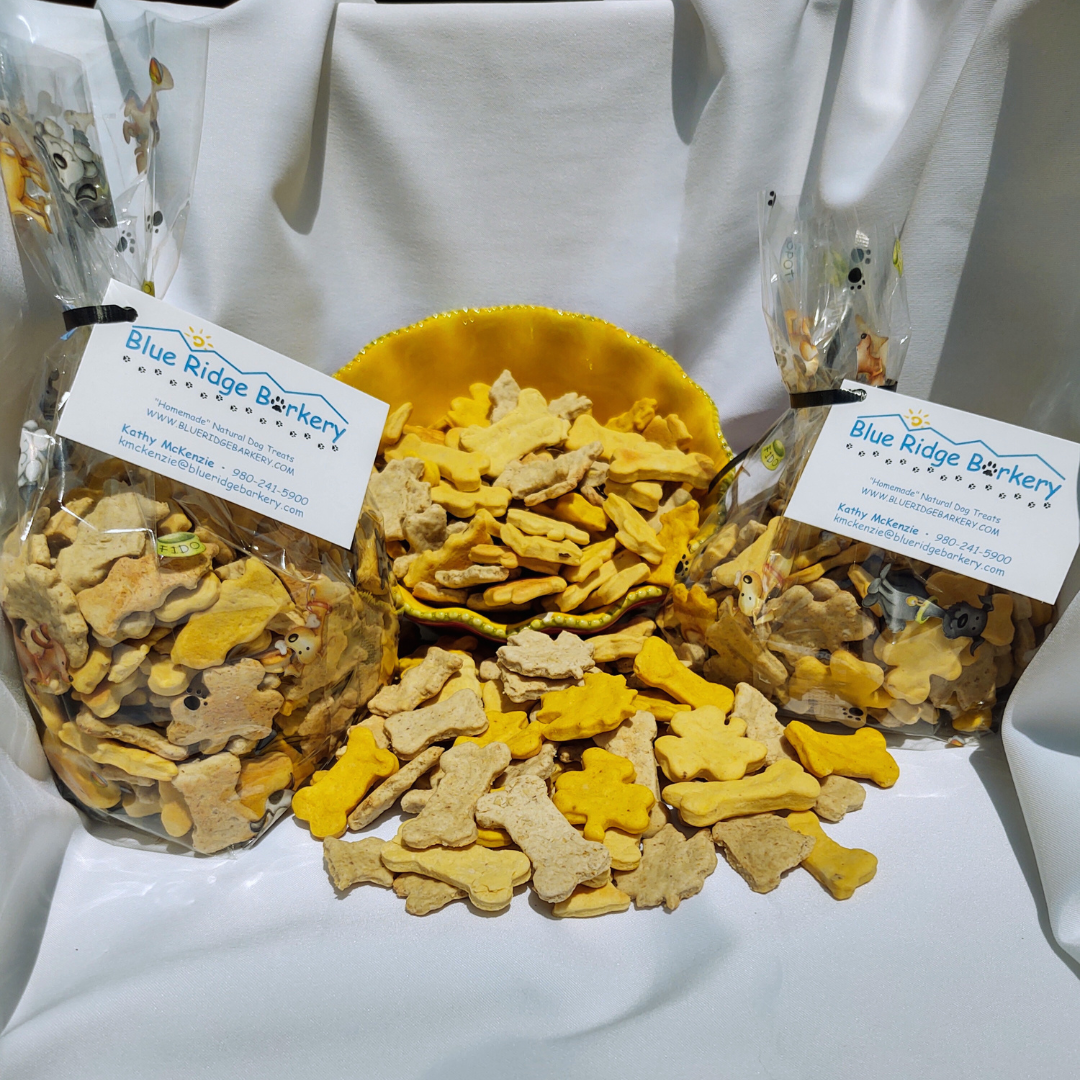 Blue Ridge Barkery bakes every treat fresh in North Carolina. All of our ingredients are human-grade and most importantly —all natural. There are no chemical preservatives, sugar or salt added. These little morsels make the perfect snack or training treat for your furever dog.
